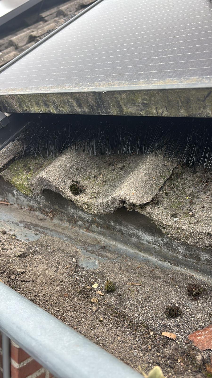 Vogelnest verwijderd onder zonnepaneel en vogelwering geplaatst